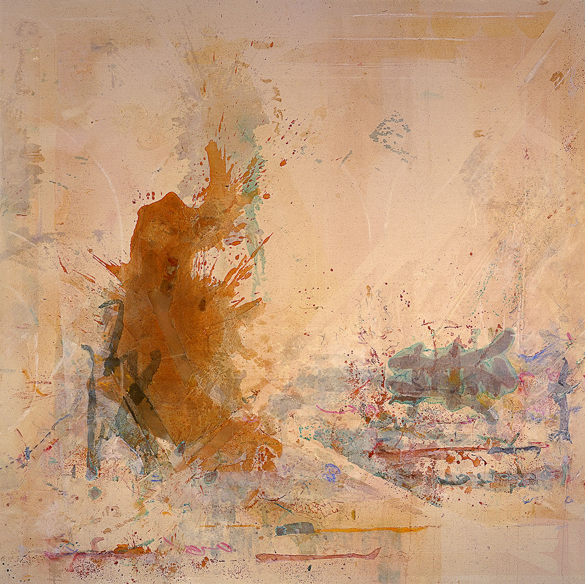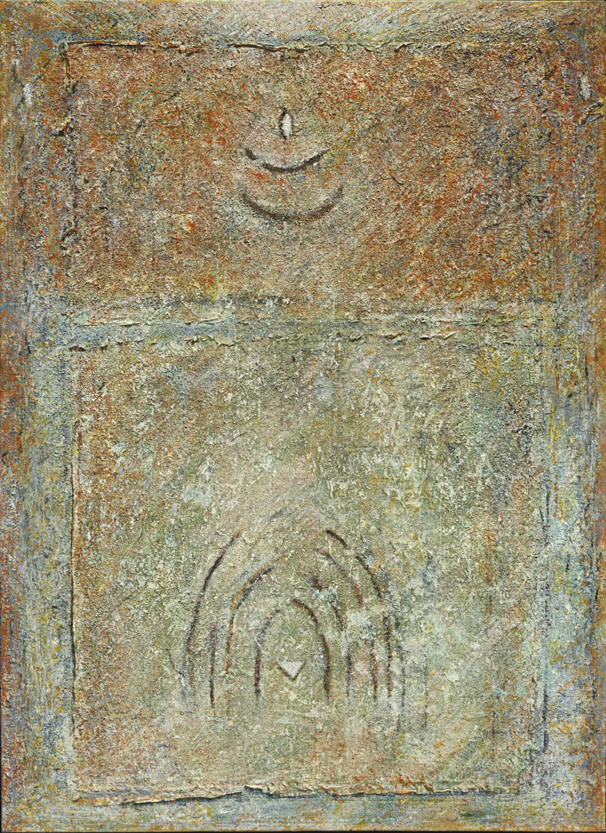 Not that all the gestural and tonal action is bound by these structures, or that it is superimposed on them. On the contrary, the synthesis and simultaneity of structure and atmosphere are self-evident—but without the geometry it would seem all too incidental, will o' the wisp. With the simple geometric structure and the columnar elements that typically coincide with it, the atmosphere becomes site-specific, as it were, and more fraught with spiritual urgency.