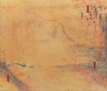 That is, the mystery of feminine passion and power emanates from the surface of the painting as it does in such similar Lerner works as Byzantine Morning and Echoes, both 1989, and Omega, 1990. While the surface in these works become progressively encrusted and agitated, and the columnar device fragmented - its parts laid out as though in an anatomy lesson - the sense of the mysterious feminine energy of the surface remains. It is the basis for the atmosphere of Lerner's Mist Series, 1991.